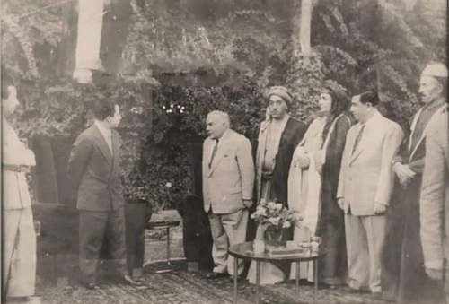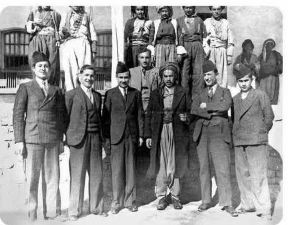 فەتاح ئاغای هەرکی و ئەسعەد فەتاح ئاغای هەرکی لە پێشوازی چەند کەسایەتییەکی بیانیدا لە گوندی میرانخۆر ساڵی 1940