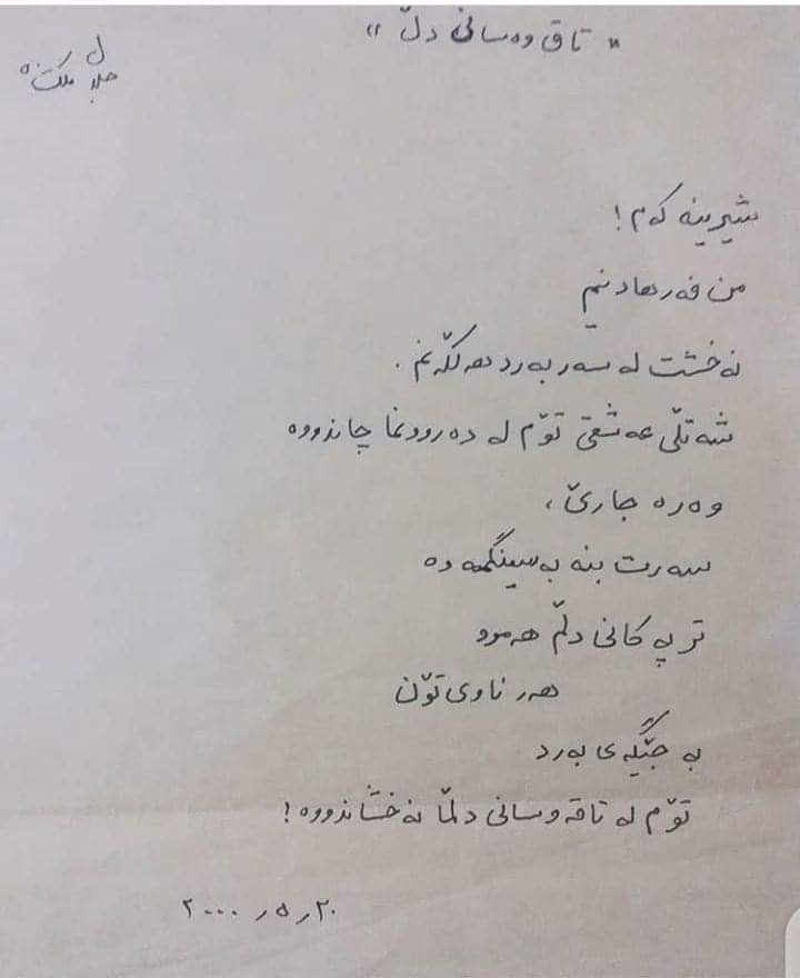 $نموونەیەک لە هۆنراوەکانی جەلال مەلەکشا:$