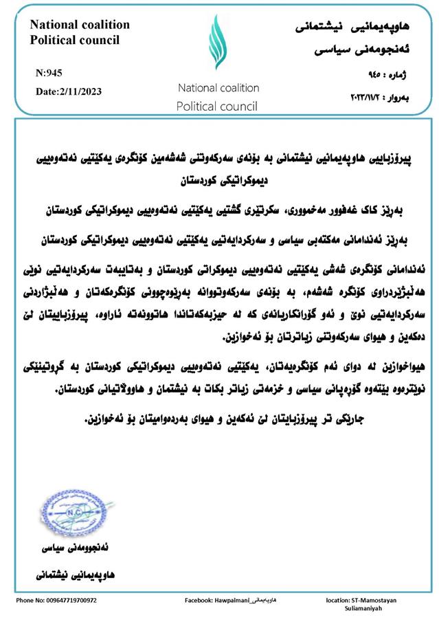 کار کردن بۆ بەستنی کۆنگرەیەکی نەتەوەیی سەرتاسەری کە تەواوی باڵە سیاسییەکانی کوردستان تیادا بەشداری بن.