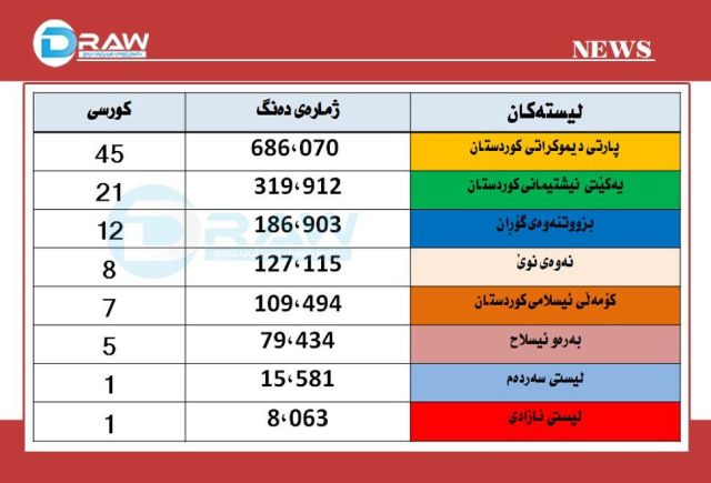 - کۆمسیۆنی باڵای هەڵبژارنەکان و ڕاپرسی هەرێم لە کۆنگرەیەکی ڕۆژنامەوانیدا ئەنجامی کۆتایی هەڵبژاردنەکانی ڕاگەیاند.[1]