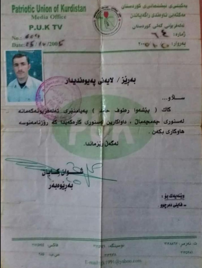 ئەندامی سەندیکای ڕۆژنامەنووسانی کوردستان و ئەندامی فدراسیۆنی ڕۆژنامەنووسانی جیهانە.