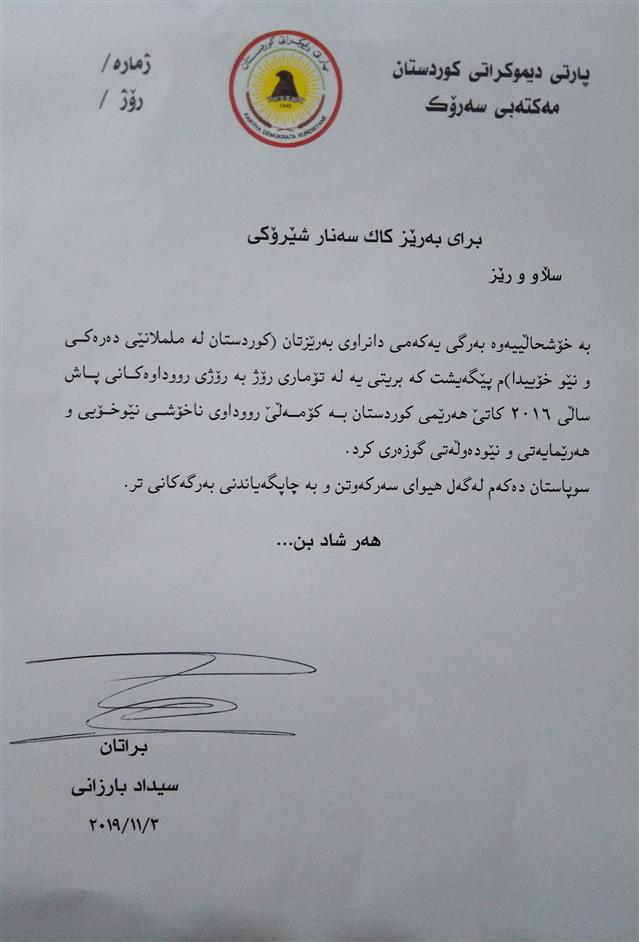- لە مۆمبای خەڵاتی نێودەوڵەتیی دایکە تێرێزا دەبەخشرێتە #ئیمان عەبدوڵڵا# ڕزگاربووی کوردی ئێزدی دەستی #داعش# و نووسینگەی ڕفێندراوانی کوردی ئێزدی.[3]