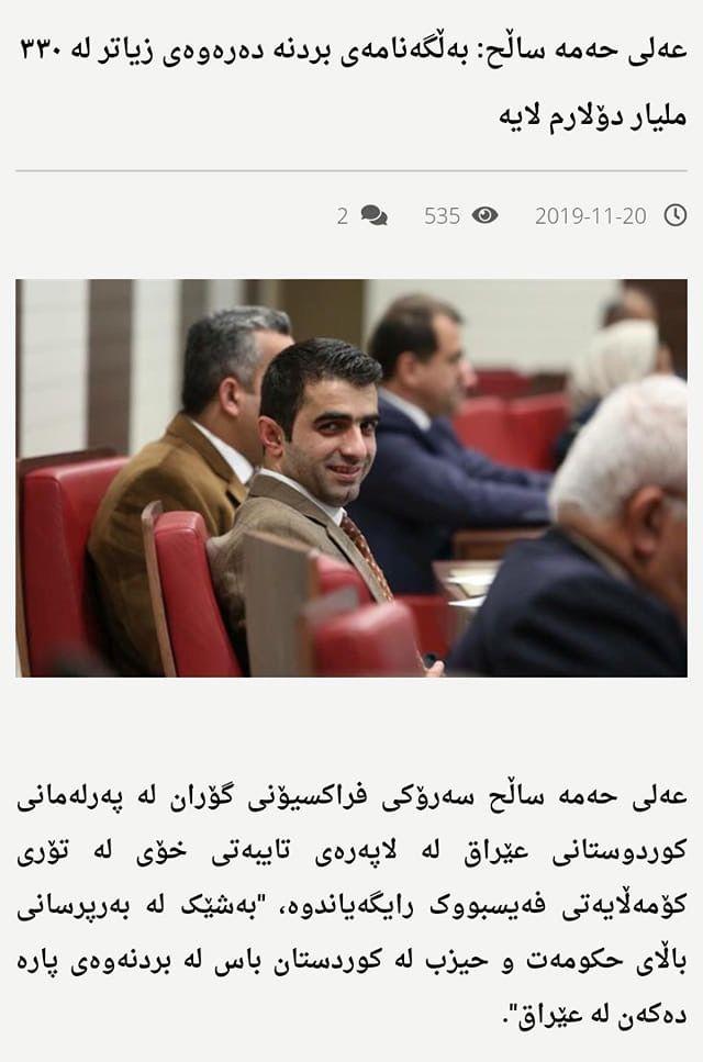 - گوتەبێژی وەزارەتی بەرگری ئەمریکا ''پێنتاگۆن ڕایدەگەیێنێت، سەرچاوەی داهاتی کێڵگە نەوتییەکانی باکووری سووریا بۆ #هەسەدە# دەچێت، نەک ئەمریکا.[2]