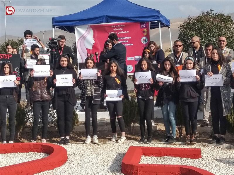 - لە #هەولێر# هەڵمەتی شانزە ڕۆژەی بەرەنگاربوونەوەی توندوتیژی دژ بە ژنان ڕاگەیەندرا، بڕیارە لەو ماوەیەدا چەند چالاکییەکی جۆراوجۆر و هەڵمەتی هۆشیارکردنەوە بەڕێوەبچێت، سەرۆکی پەرلەمانیش، دەڵێت: یاسای بەرەنگاربوونەوەی توندوتیژی دژ بە ژنان کەموکورتی تێدایە و پێویستی بە هەموار کردنەوەیە، دەشڵێت: =KTML_Mark_Begin=لە ماوەی نۆساڵدا نزیکەی هەزار ژن کوژاون یان خۆیان کوشتووە=KTML_Mark_End=.[2]