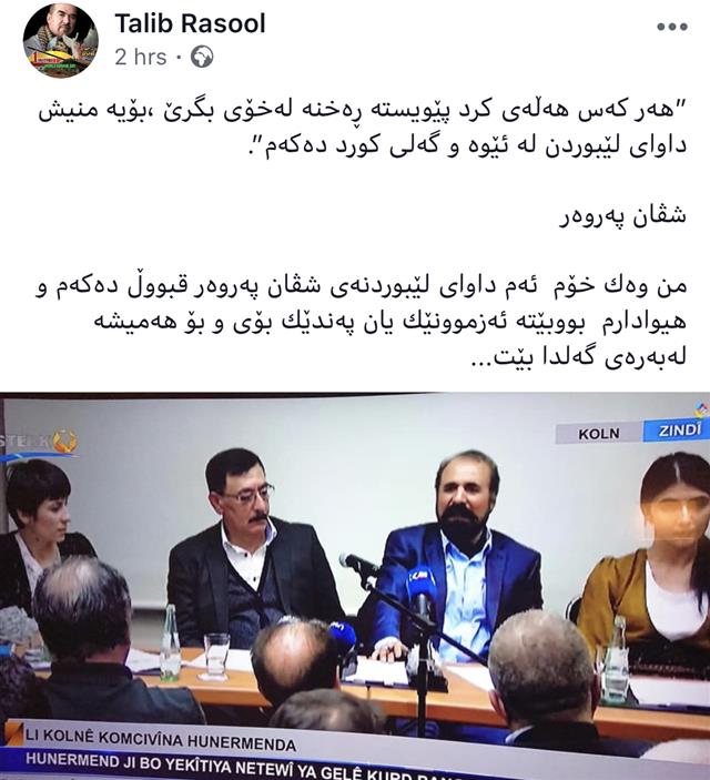 - #سەعدی ئەحمەد پیرە#، ئەندامی مەکتەبی سیاسی یەکێتی نیشتمانی کوردستان، ئەمڕۆ لە دەفتەری یادگارییەکانی ئارامگەکەی، پەیامێکی بۆ #مام جەلال#، سکرتێری کۆچکردووی یەکێتی نیشتمانی کوردستان نووسیوە و تێیدا نووسیویەتی: پەرتەوازەین و ئەم کۆنگرەیەی یەکێتی خوا بە باشی بگێڕێ.[5]