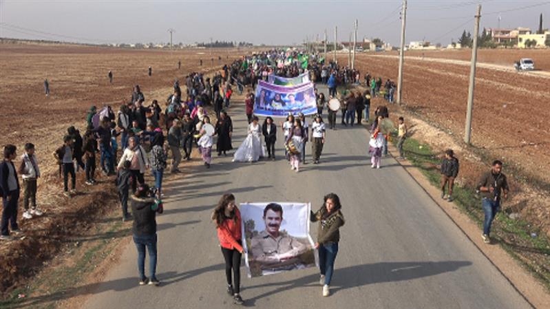 - بە هەزاران ژن لە شەهبا و #عەفرین#، لە گوندی تەل سوسن بەرەو کامپی سەردەم ڕێپێوانیان کرد. لە ڕێپێوانەکەدا دروشمەکانی 'بەو سوێندەی خواردومانە بە باوەڕ، هەڤرین، بارین و ئاماراکان، تۆڵەتان دەکەینەوە' و 'داگیرکەریی توندوتیژییە، فاشیزم دەڕوخێنین' بەرز کرانەوە.[3]