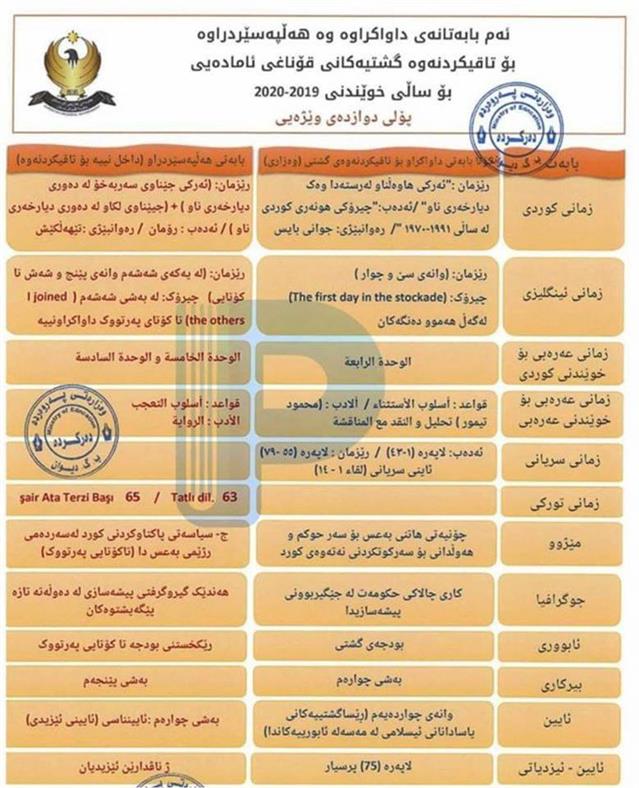 بەڵگەنامەکانی ئەمڕۆ: 03-05-2020، لیستی بابه‌ته‌ ته‌رككراوه‌كانی پۆلی 12ی ئاماده‌یی
