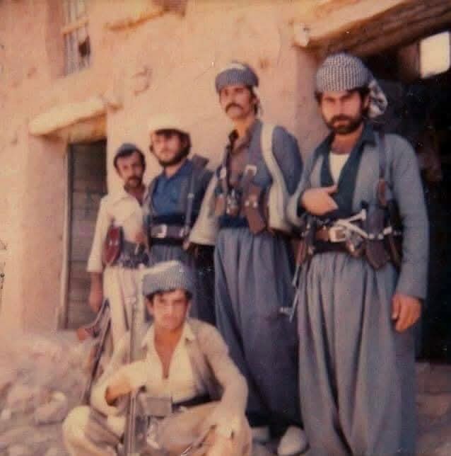 کەسایەتییەکانی ناو وێنەکە: (1-شەهید حەمید، 2-شەهید حەسەن سەنگاو، 3-فەرمان شێخ لەنگەری، 4-حسێن خەلیفە، 5-عەلی بەگ موراد)، پێشمەرگەکانی #تیپی 53ی شێروانە#ی #یەکێتیی نیشتمانیی کوردستان#.