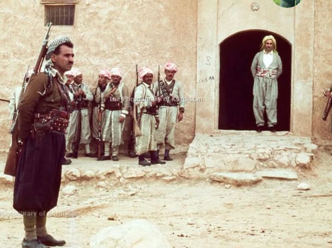کەسایەتییەکانی ناو وێنەکە: کۆمەڵێک پاسەوانی مەلا #مستەفا بارزانی# لە شاری کۆیە ساڵی 1963دا