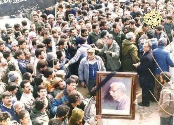 وێنەکە: مەراسیمی بەخاکسپاردنی مەلا عەبدولڕەحمانی حاجی حەمەبۆری شەرەفکەندی-#هەژاری موکریانی# لە شاری مەهاباد لە ساڵی 1991دا.