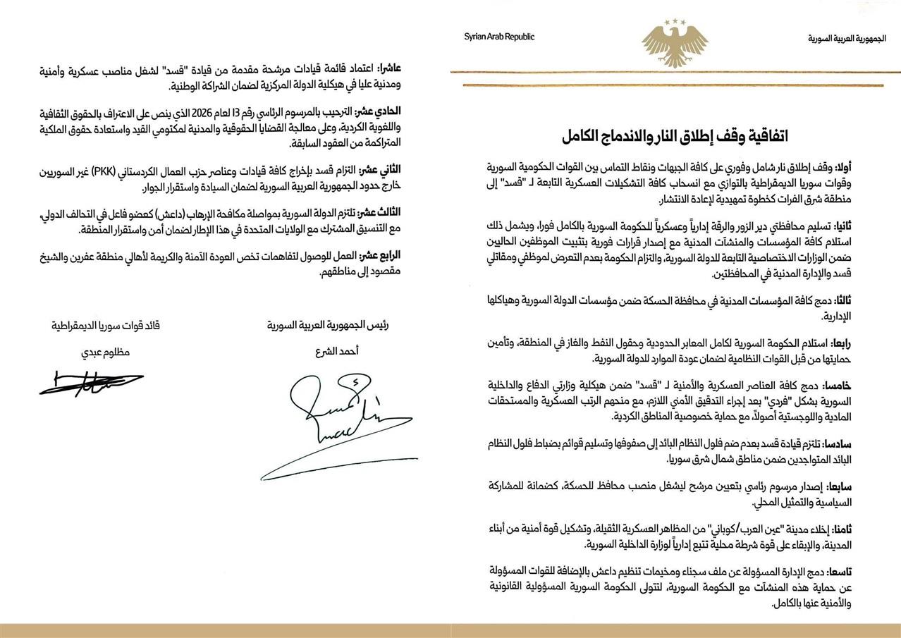 - بڵاوبوونەوەی ڕێککەوتننامەیەکی 14 خاڵیی نێوان محەمەد جۆلانی و #مەزڵوم عەبدی#. بەهۆیەوە زۆرینەی دەستەڵاتەکانی #هەسەدە# ڕادەستی داگیرکەری عەرەبیی سووریا دەکرێت. ئەم ڕێککەوتننامەیە ناڕەزاییی زۆری کوردی لێکەوتەوە.=KTML_Embed_Begin=width:20%;height:20%;float:right;=KTML_Embed_Alt=لە میدیاکانەوە: 18-01-2026=KTML_Embed_Source=https://www.kurdipedia.org/files/relatedfiles/2025/666095/0002.MP4=KTML_Embed_End=
