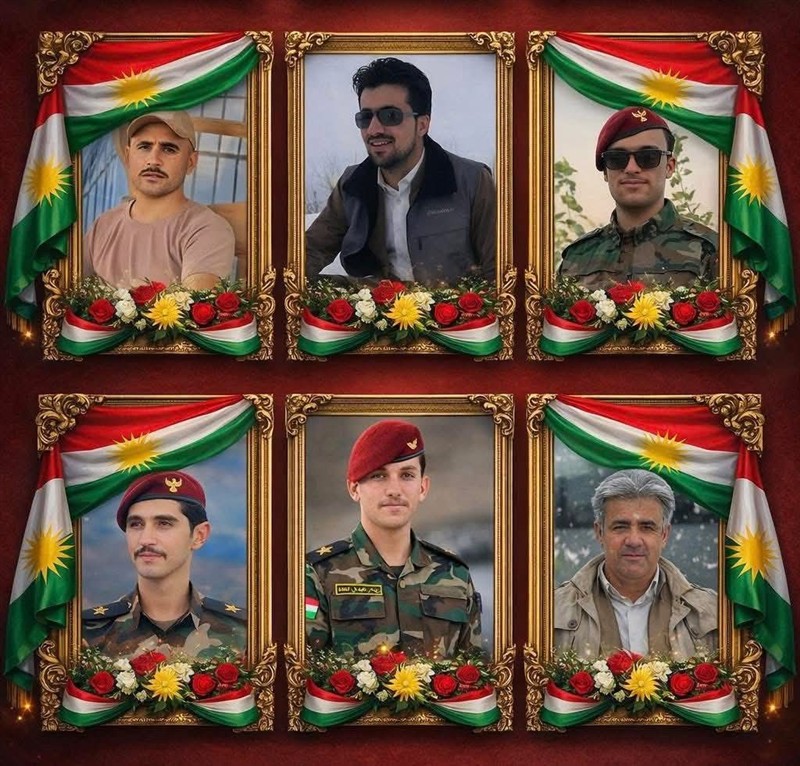- بەرەبەیانی ئەمڕۆ؛ لە هێرشێکی درۆن و موشەک بۆ سەر هێزەکانی پێشمەرگە لە سپیلک لە شارۆچکەی #خەلیفان# سەربە شارۆچکەی #سۆران#، 6 پێشمەرگە شەهید بوون و دەیانی تریش بریندار، پێشمەرگەکان سەربە فیرقەی 7ی یەکەی هەشتان. ناوی شەهیدەکان ئەمانەن: 1-شەهید ملازم ڕێبەر عەبدال لێرەبیری؛ 2- شەهید ملازم ڕامین ئۆرەماری؛ 3- شەهید پشتیوان مەلا موسا؛ 4- شەهید شهاب بریندار بێخشاشی؛ 5- شەهید زکری شاکر بێخشاشی؛ 6- شەهید کەیوان مزەفەر سیتکانی.