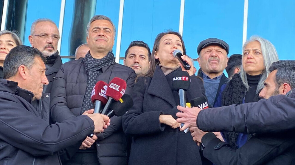 بعد 3 سنوات و9 أشهر من السجن، صدر حكم بالسجن على الرئيس المشترك لبلدية وان الكبرى عبد الله زيدان، وقد بدأت فعالية المناوبة أمام البلدية أمس ولا تزال مستمرة حتى الآن ، وشاركت أيضًا الرئيسة المشتركة لحزب الأقاليم الديمقراطية جيدم كليجغون أوجار والرئيسة المشتركة لحزب المساواة وديمقراطية الشعوب تولاي حاتم أوغولاري في الفعالية .
