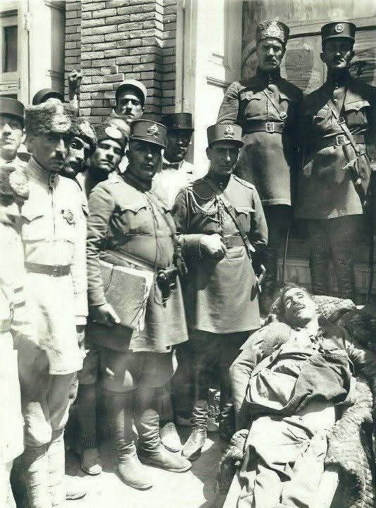 جەستەی سمکۆی شکاک لەبەردەم سەربازانی ئێران لە شاری شنۆ لە 21-07-1930