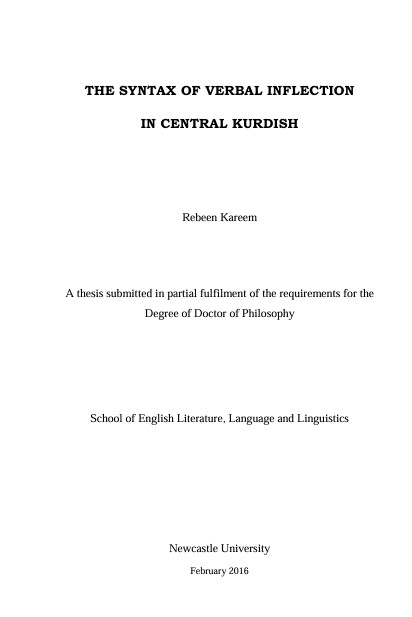 خواندن و دانلۆدکرنا پەرتووکا: THE SYNTAX OF VERBAL INFLECTION IN CENTRAL KURDISH