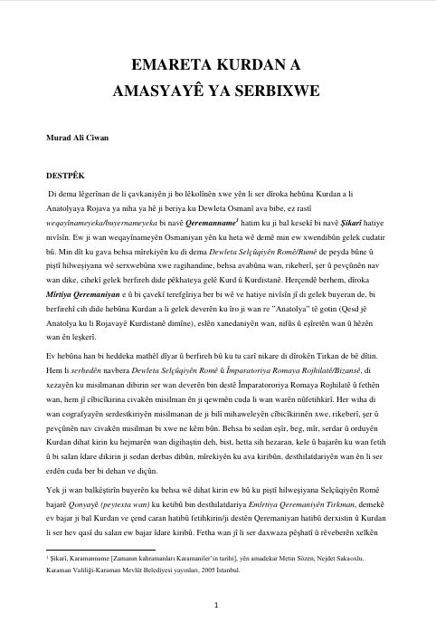 Di dema lêgerînan de li çavkaniyên ji bo lêkolînên xwe yên li ser dîroka hebûna Kurdan a li Anatolyaya Rojava ya niha ya hê ji beriya ku Dewleta Osmanî ava bibe, ez rastî