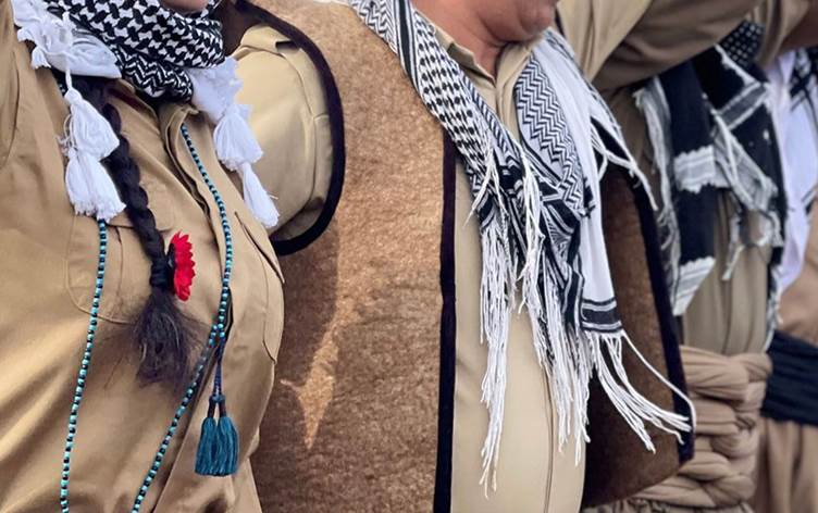 Jamaneh and khaki are traditional Kurdish outfits that have often been worn by opposition groups and are considered symbols of resistance. Many people will share photographs of themselves wearing traditional attire on social media as an act of dissent.