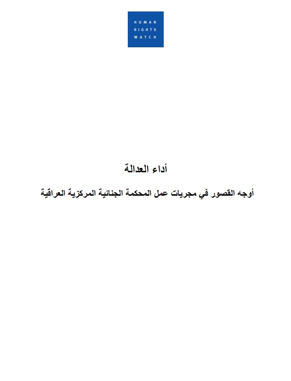 تُعد المحكمة الجنائية المركزية العراقية المؤسسة الأساسية في نظام العدالة الجنائية في العراق. إلا أنها مؤسسة مشوبة بأوجه قصور جسيمة تحول دون وفاء مجريات العمل فيها بالمعايير الدولية لإجراءات التقاضي السليمة والمحاكمة العادلة. وعادة ما يعاني المدعى عليهم من فترات مطولة من الاحتجاز على ذمة المحاكمة دون مراجعة قضائية لأوضاعهم، ولا يتمكنون من الاستعانة بدفاع فعال أو الطعن في أدلة الثبوت بحقهم. ويبدو أن الإساءات أثناء الاحتجازمنتشرة، وعادة ما تكون بهدف انتزاع الاعترافات، مما يسفر عن إلحاق القصور بمجريات المحاكمة في هذه القضايا.