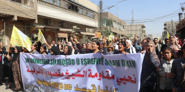 تظاهر المئات من أهالي مدينة قامشلو وعفرين المحتلة في مقاطعة الجزيرة، اليوم، دعماً لأهالي حيّي الشيخ مقصود والأشرفية في مدينة حلب، وتنديداً بالهجمات والحصار المفروض عليهما من قبل قوات الحكومة الانتقالية في سوريا.