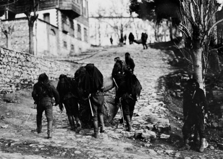 مسلحون أكراد يرتدون زي الألوية الحميدية خلال حشد المقاتلين في اسطنبول عام 1914 | أ.ف.ب