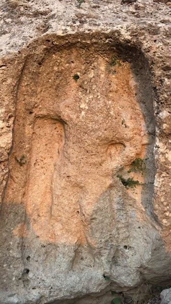 لە تەنیشت دەروازەی کۆنی #ئامێدی#، لەناو چوارچێوەیەکی لاکێشەیی ناڕێکی قووڵدا، پەیکەرێک هەڵکۆڵراوە، دەستێکی لەسەر شمشێرەکەی لاقەدییەتی و دەستەکەیی تریشی وەک بڵێی بە ڕمێک گرتووە و سەریشی ڕووە و ئاسمان بەرز کردووەتەوە، دەربارەی مێژووەکەی دەرکەوتووە بۆ ماوەی فەرمانڕەوایەتی ساسانییەکان دەگەڕێتەوە. [1]