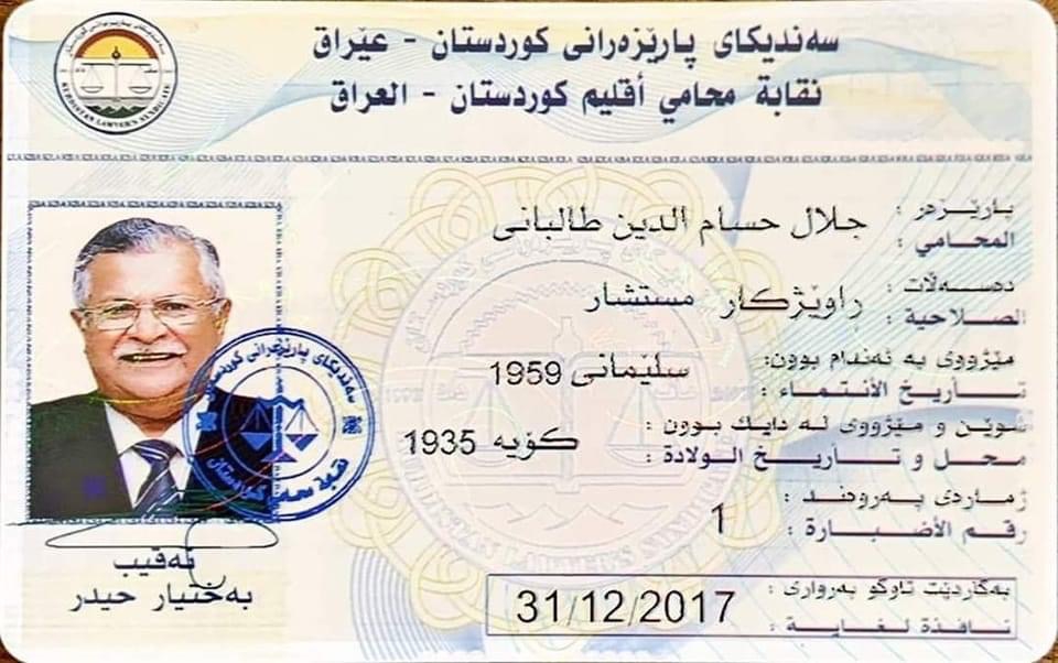 جەلال تاڵەبانی یەکەم ئەندامی سەندیکای پارێزەران بوو