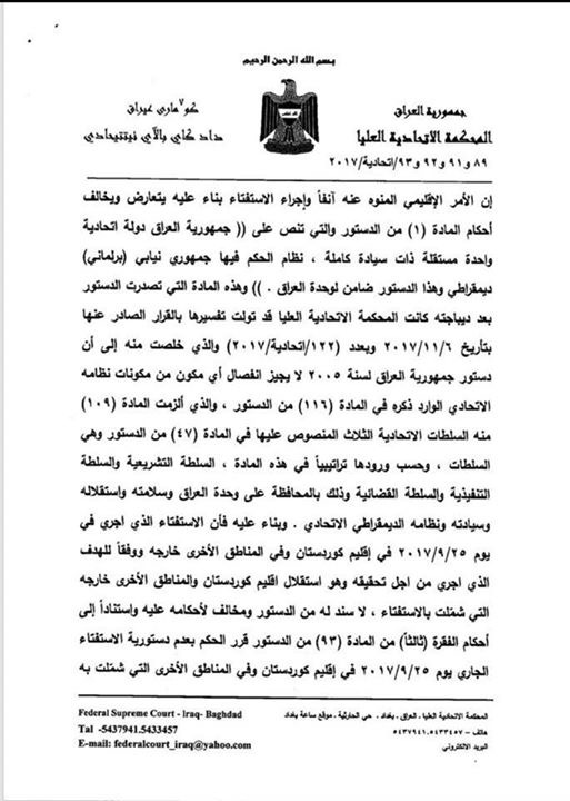 قرار المحكمة الاتحادية العليا بشأن الغاء استفتاء جنوب كوردستان