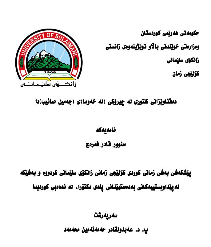 دەقئاوێزانی کلتوری لە چیرۆکی (لە خەوما)ی (جەمیا صائیب)دا