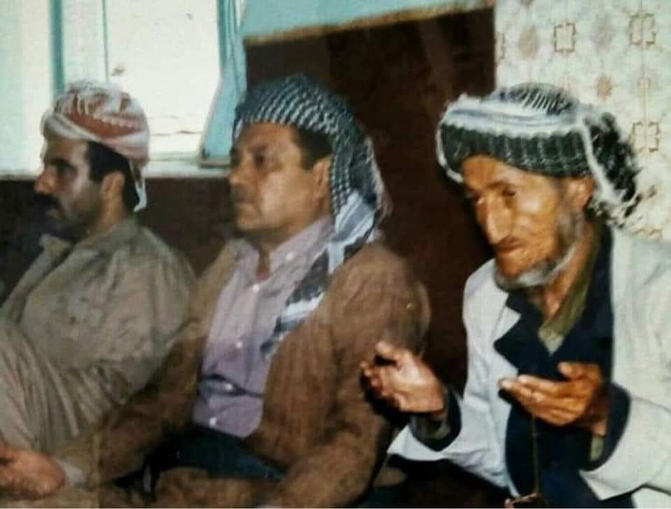 کەسایەتییەکانی ناو وێنەکە: پرسەی #ئیدریس بارزانی# لەڕاستەوە: مستەفا قازی شۆڕش، مەحمود ئاغای #کاکە زیاد ئاغای کۆیە#، نیهاد بارزانی.