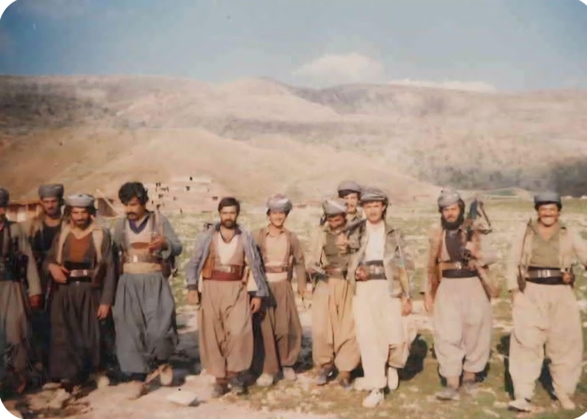 کەسایەتییەکانی ناو وێنەکە: لە ڕاستەوە: شەهید کەیفی کەریم هەینی، ئەسوەد حەسەن، نەناسراو، مەجید مەحمود، شەهید خارە جەعفەر، دڵشاد مام عەزیز جانەوەری، سەباح عەبدولقادر نعێمی (سێوەقۆڕ)، شەهید #شەهریار ساڵح حەمید موفتی-شەهرە# و شەهید سالارە سوور و شەهید ئەنوەری ناسکە.