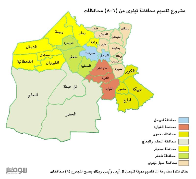 مشروع تقسيم محافظة نينوی من (٦-٨) محافظات