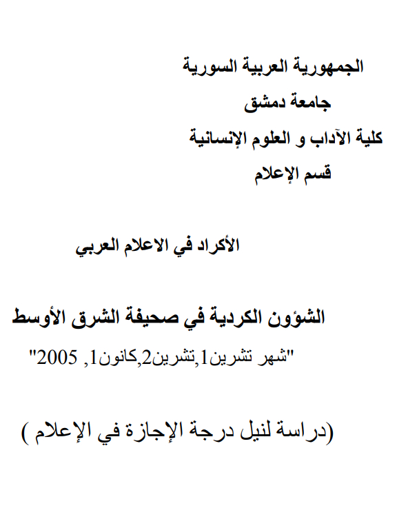 الشؤون الكردية في صحيفة الشرق الاوسط; (شهر تشرین 1، تشرین 2، كانون 1؛ 2005)