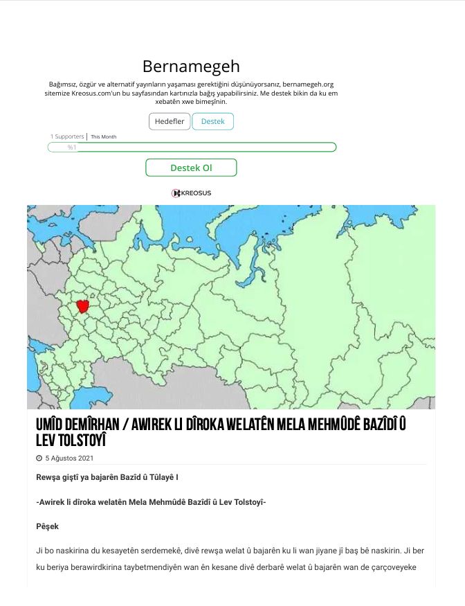 Awirek li dîroka welatên Mela Mehmûdê Bazîdî û Lev Tolstoy