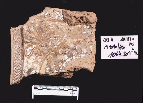 پارچەیەکی لە قوڕ دروستکراوی سورەوە کراوه، کە گوزارشت لە نەخش و نیگار و جوانکاری دەکات، لە گردی ساتوقەڵای گوندی ساتوقەڵای شارەدێی #تەقتەق# لە ساڵی 2011 دۆزراوەتەوە.