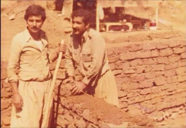 کەسایەتییەکانی ناو وێنەکە: لەڕاستەوە: #حەمە جەزا# لەکاتی دروستکردنی دیوار لە گوندی باراو، نەناسراو