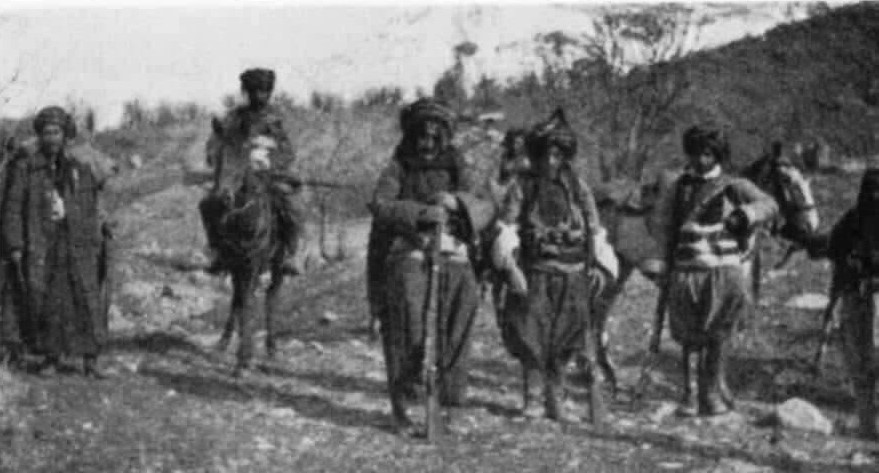 کەسایەتییەکانی ناو وێنەکە: شێخ محەمەد ئاغای وەڵاشی و چەکدارانی لە ناوچەی باڵەکایەتی لە ساڵی 1914دا.