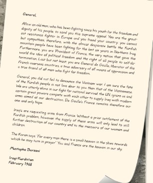 In his letter, Barzani thus appealed to de Gaulle, one of the most prominent leaders in post-World War II Europe, for assistance: “General, you did not fail to denounce the Vietnam war; I am sure the fate of the Kurdish people is not less dear to you than that of the Vietnamese.”