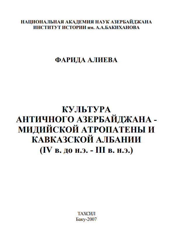 название книги: Культура античного Азербайджана - Мидийской Атропатены и Кавказской Албании (IV в. до н.э. III в. н.э.)