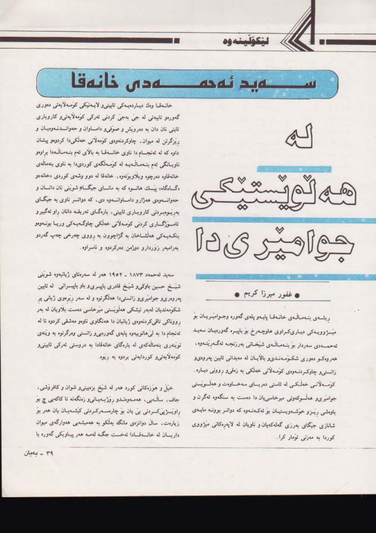 جارێک سەید ئەحمەدی خانەقا لە مەلای کۆیە ئەپرسێ: مامۆستا دەغڵ و دانی لای ئێوە چۆنە؟