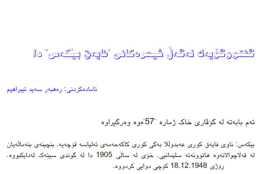 گفتوگۆیە ک لەگەڵ شیعرەکانی فایەق بێکەس دا