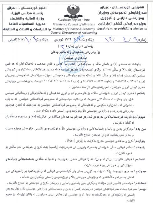وەزارەتی دارایی و ئابووری ڕێنمایی بۆ خەرجکردنی کرێی خوێندن ڕاگەیاند