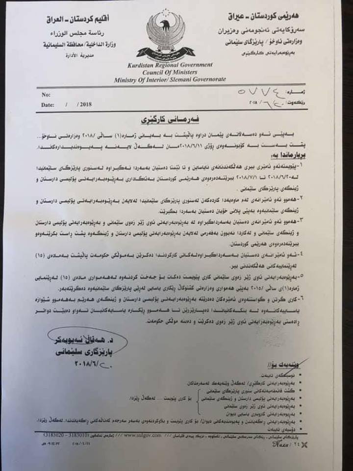 ئەو ئامێری بیرهەڵکەندنانەی نایاساین و تا ئێستا دەستیان بەسەردا نەگیراوە، دەبێت لە سنوروی پارێزگای سلێمانی لە 20ی حوزەیرانی تا 1ی تەمموزی 2018 ببرێنە دەرەوەی هەرێمی کوردستان