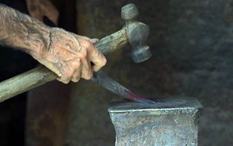ئاسنگەر، کورەی هەیە بۆ تواندنەوەی ئاسن تاوەکوو بەپیاکێشان و پیاکوتانی بەئارەزووی خۆی شێوەی ئاسنەکە بگۆڕێت و ئەوەی گەرەکیەتی لێی درووستبکات، تا وەکوو گەرم نەکرێت ئاسنگەر ناتوانێت هیچ لە شێوەی ئاسن و پارچە شیشەکە بکات، چونکە تا بەیانی ئاسنگەر لەسەر دەزگاکەی بە کوتک و چەغماغەکەی پارچە ئاسنێکی سارد بکوتێت جگە لە هیلاک بوون و ماندووبوون و عارەقەی شین و مۆر هیچ سوودێک نابینێت، ئەم حاڵە لە دەربڕی کوردەواریدا هاتووە بۆ کەسێکی لامل و (ئینکار) نەیەوێت بسەلمێنێت، یان کارێک هیچ ئەنجامێکی نەبێت. [1]