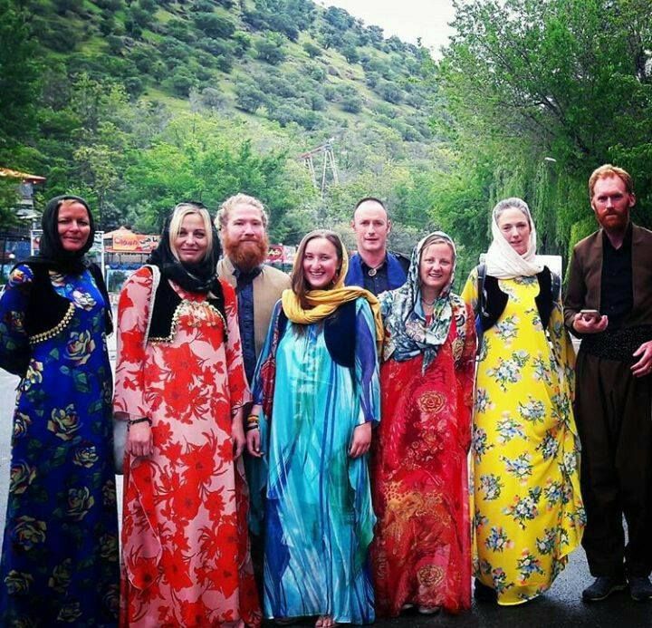 هەندێک گەشتوەری ئەڵمانی، نەمسایی و ئوسترالیایی لە زرێباری مەریوان بە جلی کوردییەوە