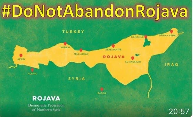 - بۆ ئیدانەکردنی مامەڵەی قێزەونی نێوان بەڕێوەبەریی ئەمریکا و تورکیا بەرامبەر بە گەلانی باکوو و ڕۆژهەڵاتی سوریا، لە بەردەم بارەگای هێزەکانی هاوپەیمانیی نێودەوڵەتیی دژ بە داعش لە #کۆبانی# کۆدەبنەوە.[5]