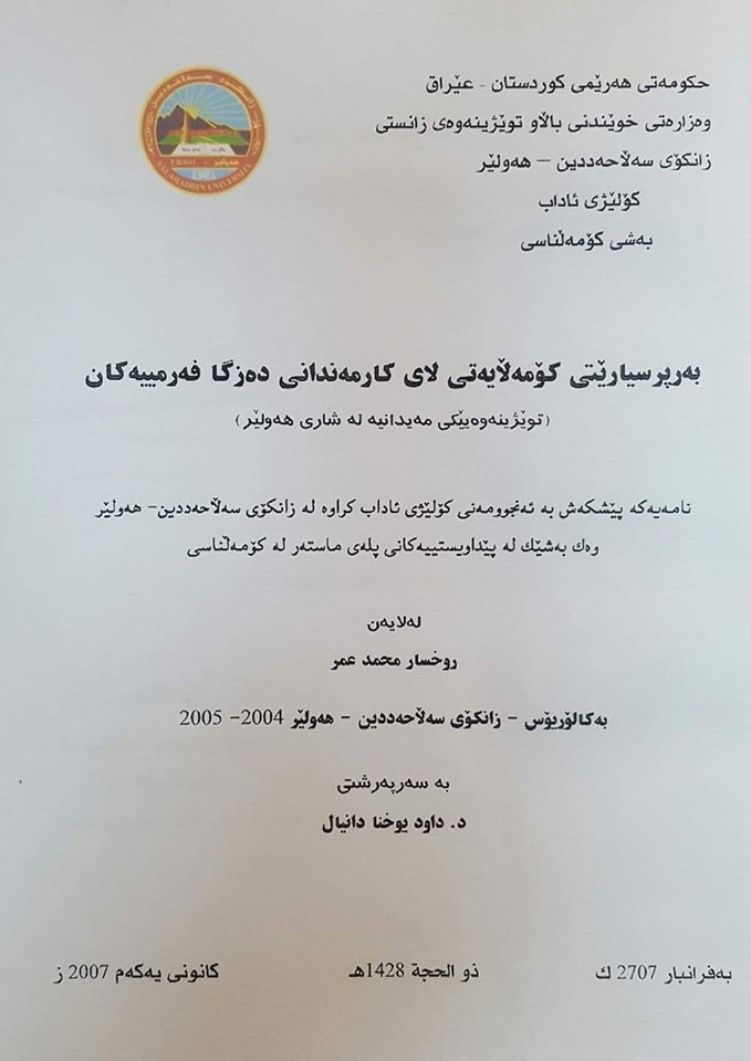 نووسەر: ڕوخسار محەمەد عومەر شوێن : کۆلێژی ئەدەبیات ؛ زانکۆی سەلاحەدین ساڵ: 2007[1]