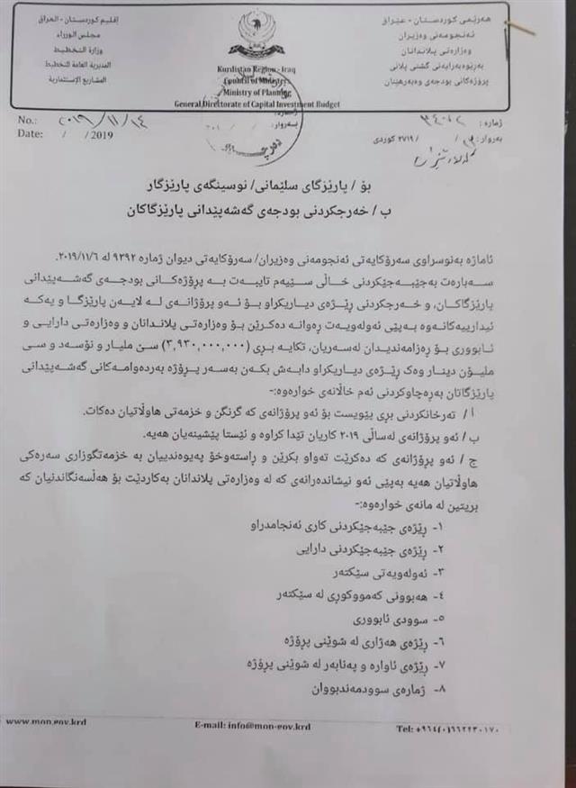 بەڵێندەرانی سلێمانی داوایەک ئاراستەی پارێزگار دەکەن و تیایدا داوادەکەن پارەی گەشەپێدانی پڕۆژەکانیان بۆ خەرج بکات