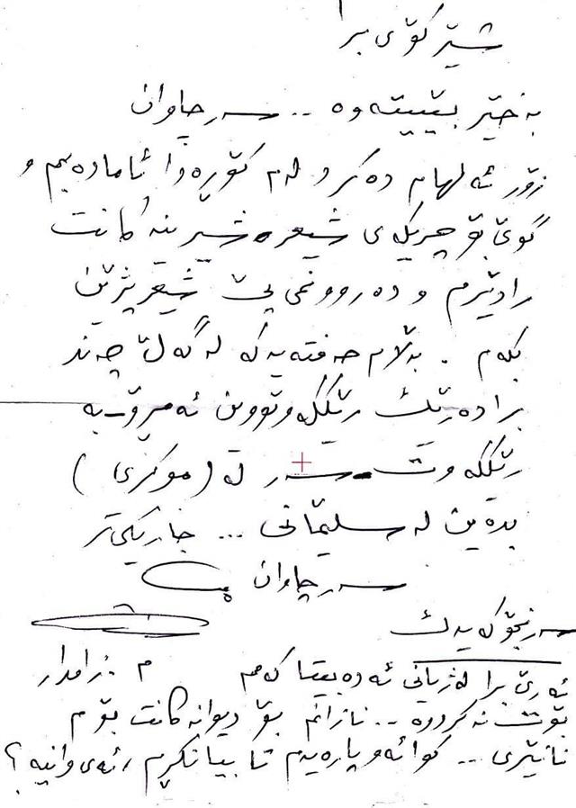 کات و شوێنی نووسینی نامەکە دیار نییە!
