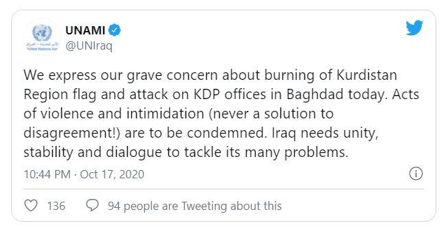 - ئەنجوومەنی وەزاریی ئاسایشی نیشتمانیی عێراق بە سەرۆکایەتی #مستەفا کازمی# سەرۆکوەزیران کۆبووەوە بۆ تاوتوێکردنی ڕەوشی عێراق بەگشتیی و هێرشی سەر بارەگای لقی پێنجی پارتی و سووتاندنی ئاڵای کوردستان بەتایبەتی. کۆبوونەوەکە سەرکۆنەی هێرشەکە و سووتانی ئاڵای کوردستان دەکات.[3]