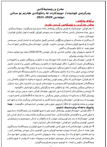 مەرج و ڕێنماییەکانی وەرگرتنی قوتابیان/ خويندکاران لە زانکۆکانی هەرێم بۆ ساڵی خوێندنی 2020 - 2021